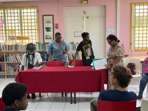 En effet, un échange nourri s’est instauré entre les intervenants du Cepong Mme Picard et Klod KIAVUE, médiateurs sociaux, et les membres des associations ANANSI , Bi-Fwi et Korosol, Prisca Melyon- Reinette, jay Barambke, Maëlys Actry… et les élèves.